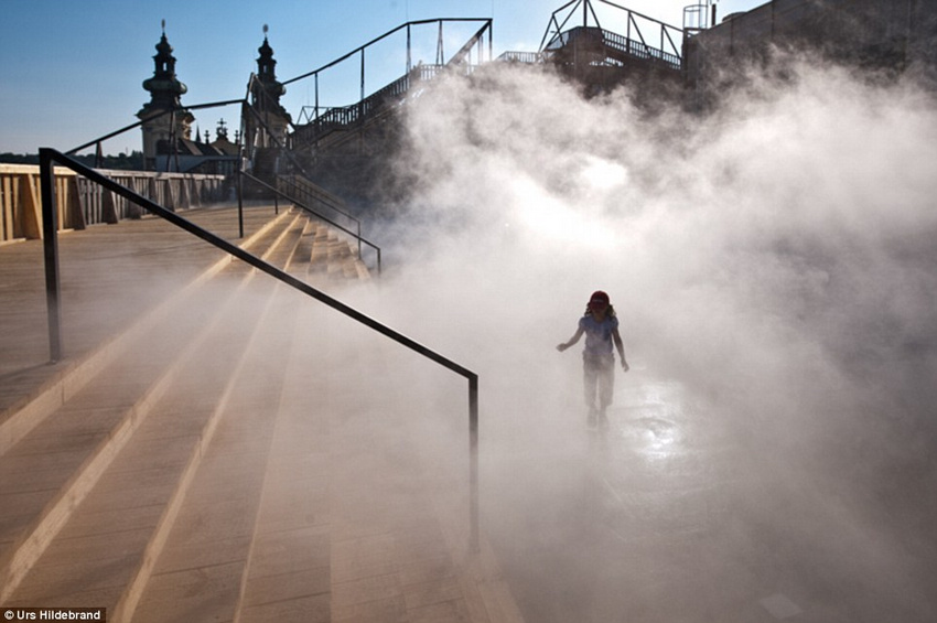 【日本艺术家屋顶造"梦幻仙境":似漫步云端】英国《每日邮报》4月25日报道称,一位日本艺术家为人们创造了一个“漫步云端”的机会——2011年,这名艺术家在奥地利林兹市一处屋顶停车场制造了漫天大雾,浓雾几乎完全淹没了游客,创造出一种身在云端的幻境。