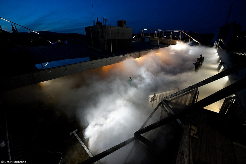 这名日本艺术家名叫中谷芙二子(Fujiko Nakaya),其利用一种烟雾装置制造了这一幻境。这种烟雾装置拥有一个功率强大的泵,水在高压下通过一个专门设计的泵嘴喷射出来,形成了浓雾。