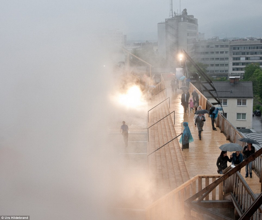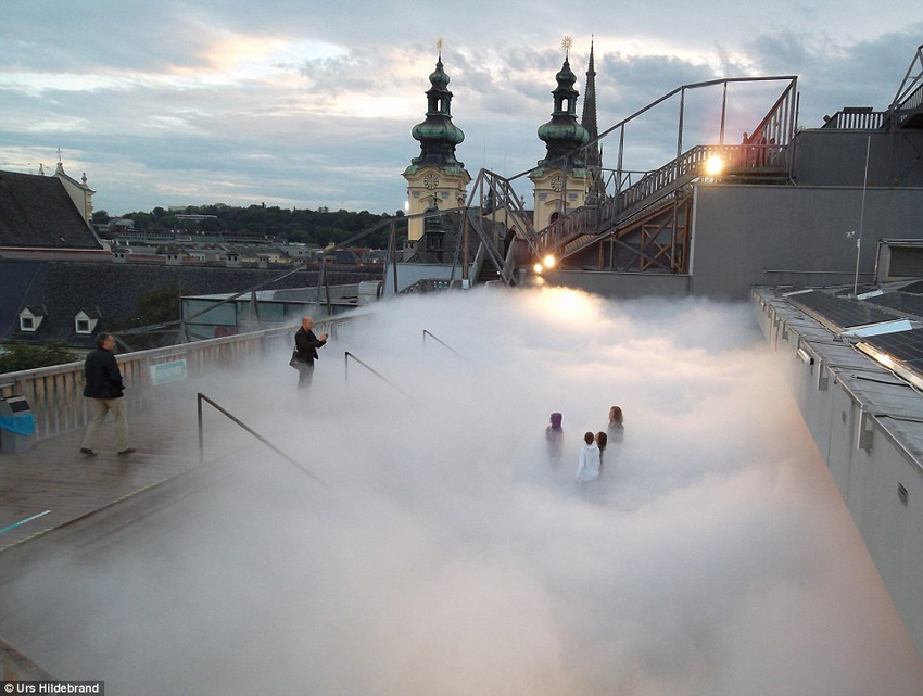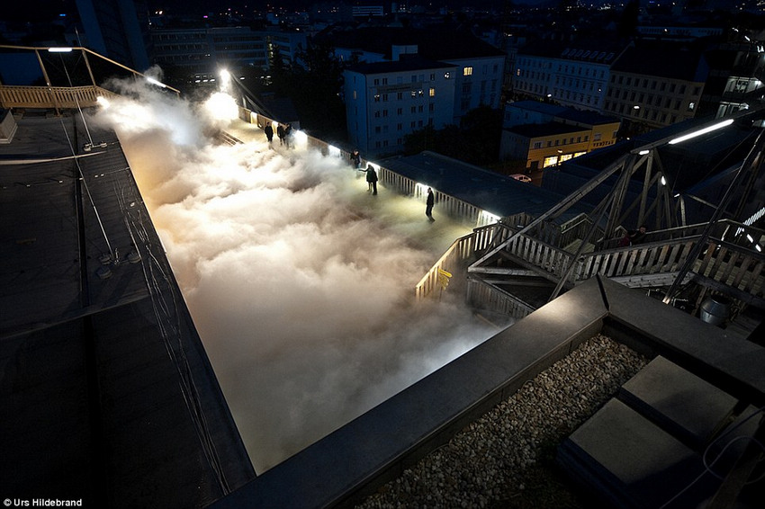 英国《每日邮报》报道称,一位日本艺术家为人们创造了一个“漫步云端”的机会――2011年,这名艺术家在奥地利林兹市一处屋顶停车场制造了漫天大雾,浓雾几乎完全淹没了游客,创造出一种身在云端的幻境。