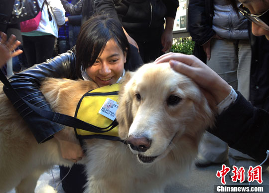 中新社伯克利12月10日电 (记者 刘丹)10日午后,6只经过特殊训练的狗“医生”出现在美国加州大学伯克利分校,它们是“与宠物拥抱”活动的主角,专门为圣诞节前期末考试重压下的学生带来快乐和轻松,舒缓学生的紧张情绪。