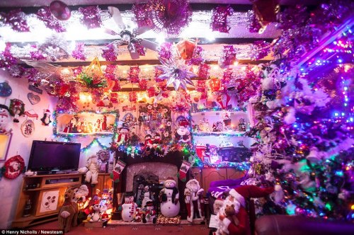 据悉,自1969年以来,哈里夫妇每年都会用大量装饰品装饰房子,把自家房子装扮成圣诞老人的“快乐小屋”。多年来他们共花了近1万英镑,买了2500个灯饰、300个圣诞老人及100个雪人公仔等。