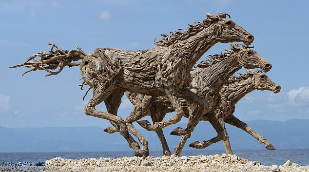 现年46岁的艺术家詹姆士表示,三匹骏马木雕所用的漂浮木主要是从菲律宾的宿雾岛周边的海滩和河道中回收而来,也有部分漂浮木是他通过网络寻求关系网内的友人帮助而得。总之,这件艺术品也算是他的梦想之一。(实习编译:贾杉杉、丁丁审稿:郭文静)