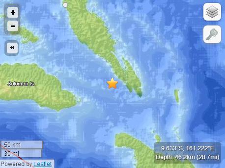 中新网1月29日电 据美国地质勘探局网站消息,北京时间29日8时32分,所罗门群岛附近海域发生里氏5.5级地震,震源深度46.2千米。