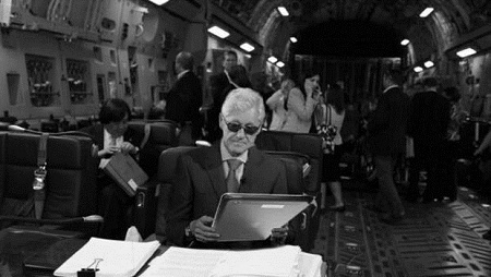 希拉里推特头像是就任国务卿期间在一架军用飞机上拍的,当时她戴着墨镜,拿着黑莓,前面还堆着一叠文件。克林顿头像的背景完全“照搬”希拉里的,在造型上他也下了一番功夫,戴着与爱妻类似的墨镜,并浏览着超大平板电脑。