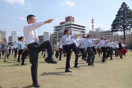 中新网4月10日电 据日本时事通讯社10日报道,为锻炼身体养成良好习惯、预防疾病,日本枥木县在县政府办公楼前的广场公开职场广播操。
