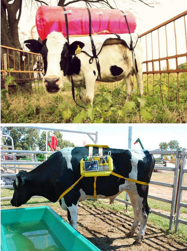 阿根廷科学家最新研制一种“fartpacks”,一天可以从奶牛体内提取300升甲烷。从背包一端延伸的管子插入奶牛的消化腔,收集它们排放的气体。采集的甲烷气体能转化为充足能量,使汽车行驶24个小时。