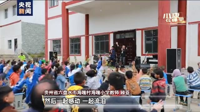 贵州省六盘水市海嘎村海嘎小学教师 顾亚:我看到五六年级大一点的孩子都坐在下面流泪,让我印象最深刻的是一个男孩,就之前会没有那么愿意去当着同学或者老师唱歌。那一天他主动申请,他说我要唱一首歌。 我很感动的,我陪他一起唱,然后一起感动、一起流泪。