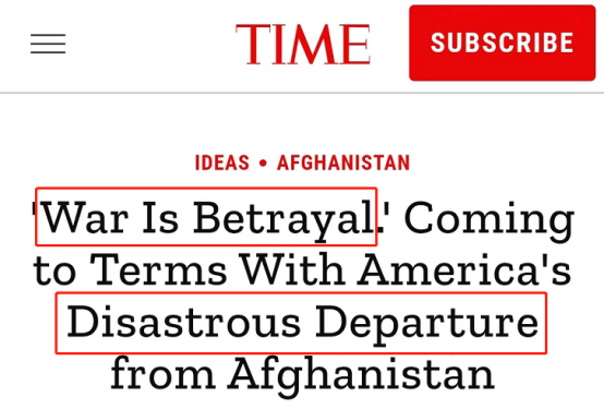 △《时代》8月12日文章标题,强调美国在阿富汗的战争是“背叛”,撤离是“灾难”。