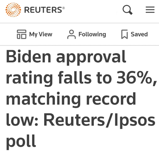 拜登的支持率也自撤离惨剧后一路下行,屡创新低,从2021年7月的59%跌到2022年7月的36%。
