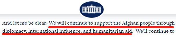 2021年8月30日,美国宣布结束自阿富汗的撤离行动。美国总统拜登第二天在白宫就阿富汗撤军行动发表讲话,承诺继续通过外交手段、国际影响力和人道主义援助支持阿富汗人民。然而现实是,在之后的一年里,从联合国秘书长到各国官员媒体,提到阿富汗现状,都无法忽视正在发生的“人道主义危机”。根据联合国的数据,目前阿富汗有1890万人面临可能致命的严重粮食短缺,其中110万儿童有饿死的危险。
