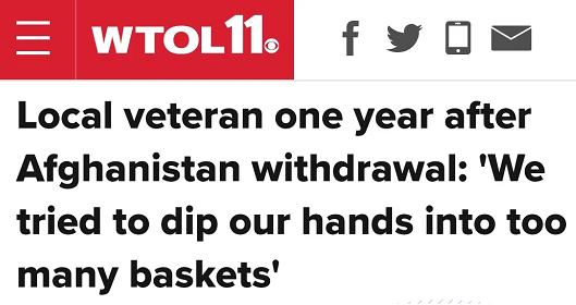 曾在阿富汗服役的美国陆军退伍中士大卫·戈德曼(Dave Gedman)8月10日通过俄亥俄州当地电视台告诉家乡的父老乡亲:“美国政府收获的最大教训是,我们把手伸得太长了,遭到了反噬。”