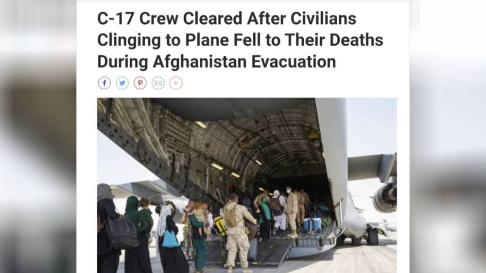 2021年8月16日,两名阿富汗平民在喀布尔国际机场从美军撤离的军机上不幸跌落遇难。美军方后来宣布该机组人员“没有任何过错”。