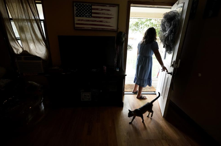 罗布小学枪击案的幸存者娜娜站在自家门口。幸存下来的学生们整个夏天都在与创伤后应激障碍作斗争。图/AP