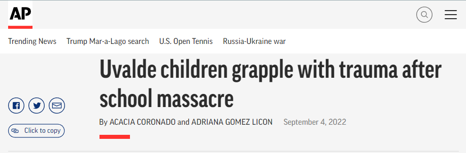 尤利·卡斯特罗(Yuri Castro)是乌瓦尔德市两个男孩的母亲,她的表兄弟在枪击事件中丧生,曾教过她儿子的两名老师被枪击致死。她说,“这些孩子这么小就经历了这些,让人难以接受。”卡斯特罗知道有些孩子受到了巨大的创伤,以至于不再说话。校园枪击案极大地颠覆了幸存者的生活。对一些人来说,症状持续多年,很难找到高质量的治疗方法。