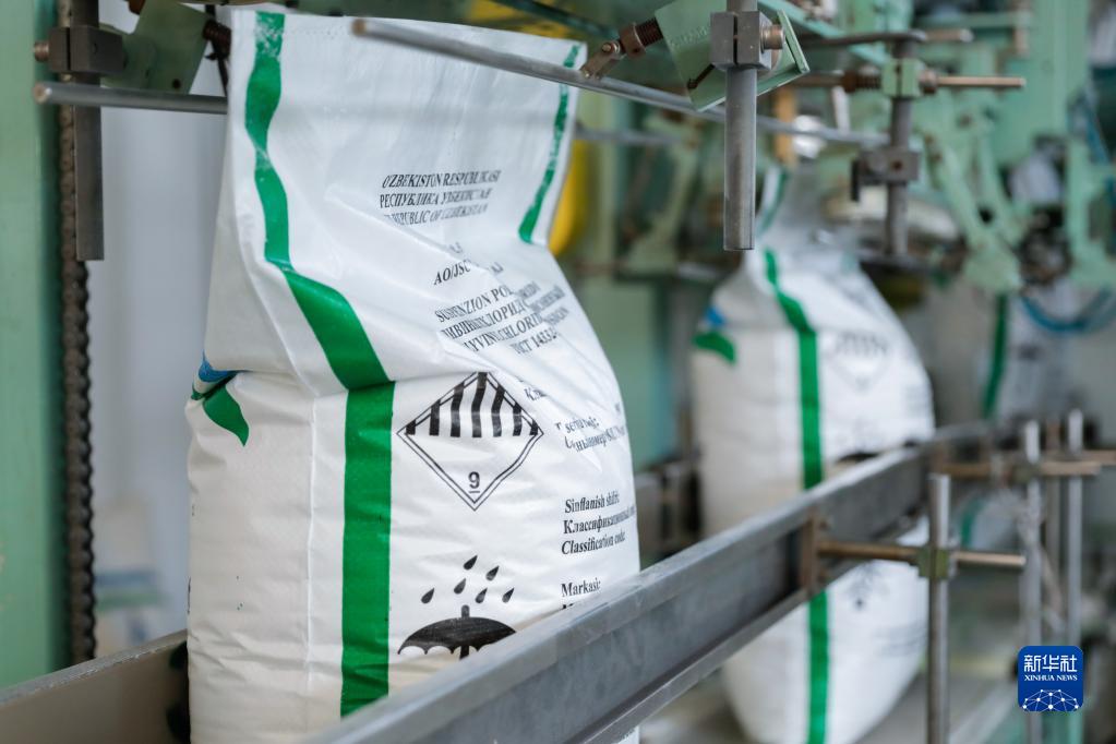 日前,乌兹别克斯坦中部纳沃伊州首府纳沃伊市持续高温,但纳沃伊氮肥股份公司聚氯乙烯生产线上却仍是一派繁忙景象:随着机器人灵活的动作,传送带上25公斤装的聚氯乙烯鱼贯而出并被一一码放整齐,随后被叉车搬运至包装车间外的铁路货箱和卡车货箱中。