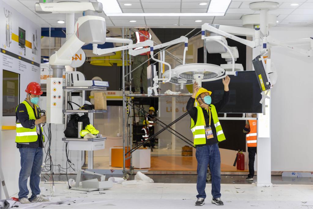 10月31日,国家会展中心(上海)内布展工作正有序进行。新华社记者 王翔 摄