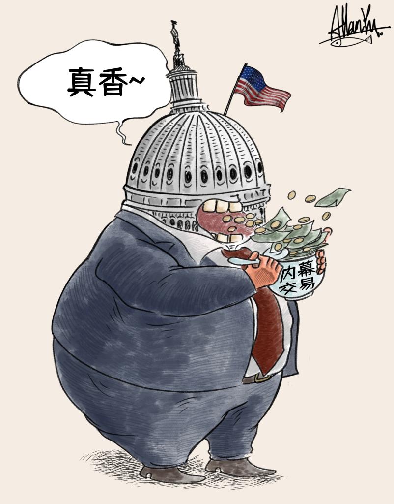 美国政客“点石成金”的背后,是利用内幕交易中饱私囊的黑暗勾当。这再次证明,美国的“金钱政治”不仅意味着“政治离不开金钱”,也意味着一些人“从政就是为了金钱”。