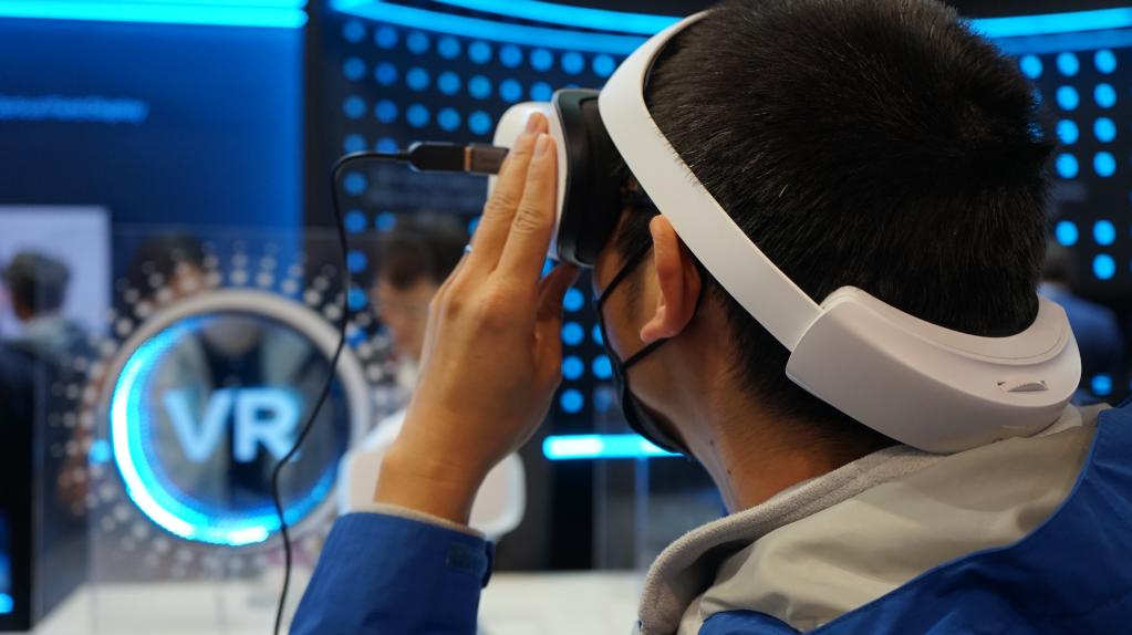 1月8日,一名女士在美国拉斯维加斯消费电子展上体验智能科技。新华社发(曾慧摄)