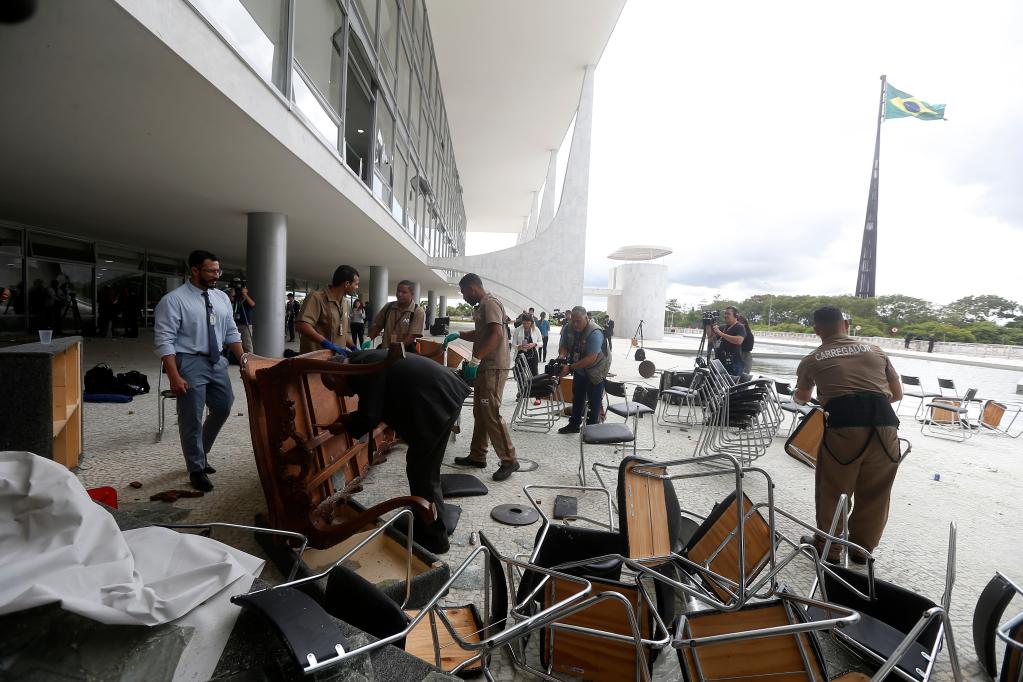 因不满去年10月的大选结果,数千名博索纳罗的支持者1月8日闯入位于首都巴西利亚的国会大厦、联邦最高法院和总统府,对内部设施和设备实施打砸破坏,导致总统府窗户破损、办公用品散乱,国会大厦部分区域淹水,最高法院多个会议厅遭洗劫。部分示威者还与军警发生冲突。据巴西警方透露,目前共有超过1500名暴力示威者被逮捕。