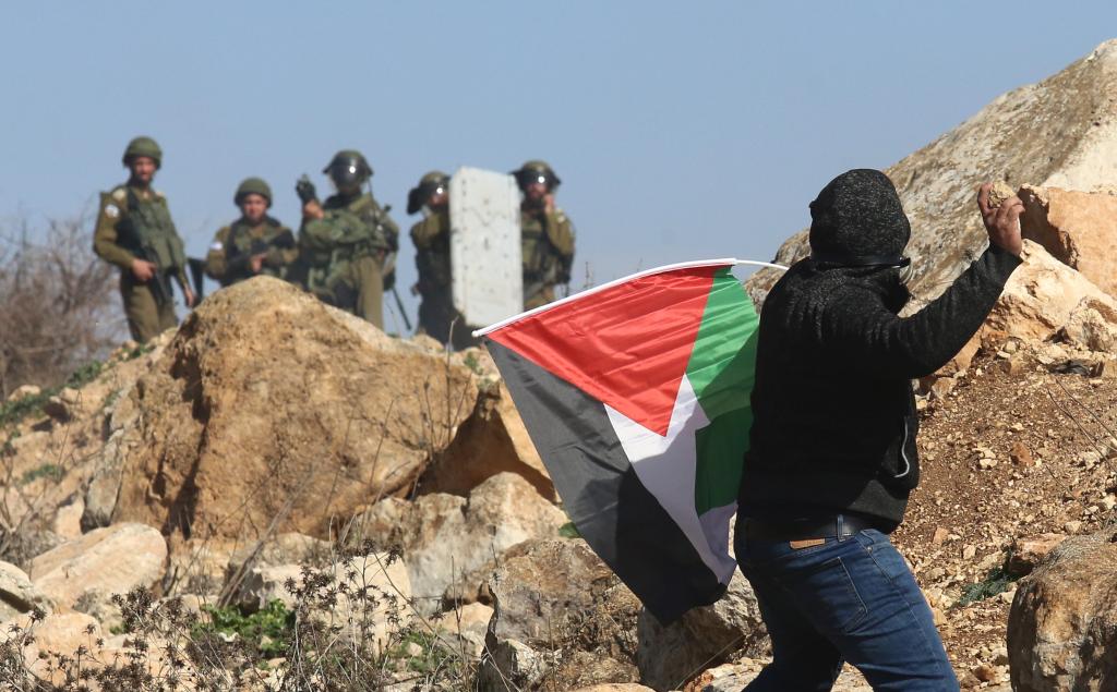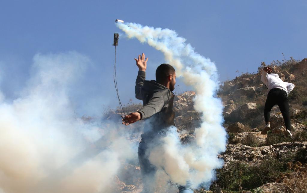 2023年1月27日,在约旦河西岸城市纳布卢斯东部村庄拜特代坚,巴勒斯坦抗议者与以色列士兵发生冲突。新华社发(尼达勒摄)