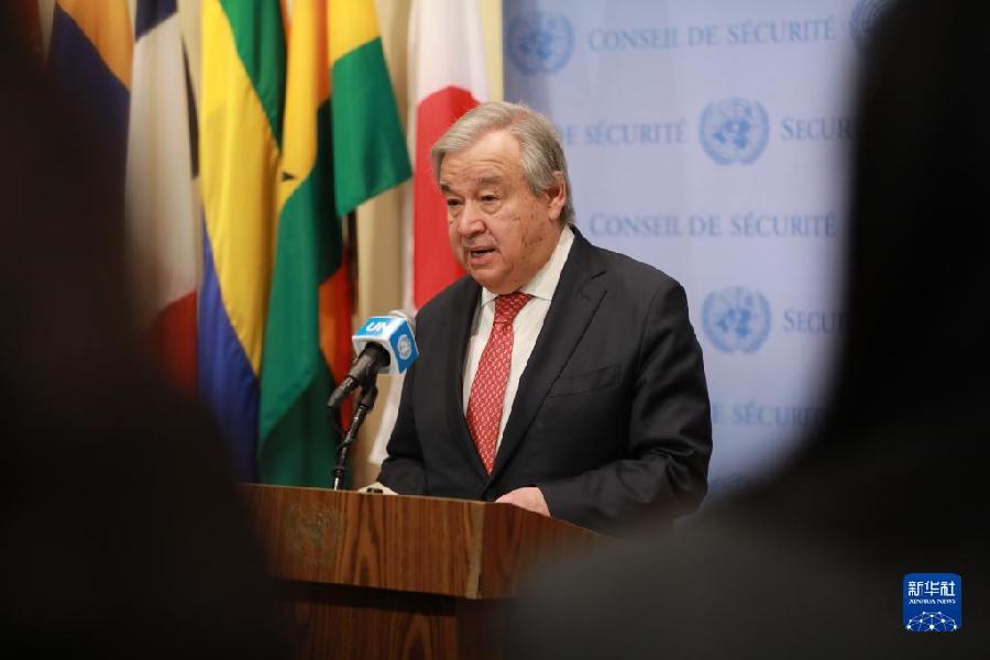 2月9日,在位于纽约的联合国总部,联合国秘书长古特雷斯发表讲话。新华社记者 谢锷 摄