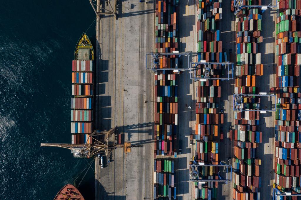 这是2019年9月6日航拍的停靠在希腊比雷埃夫斯港集装箱码头的中远海运银河轮。新华社发(莱夫特里斯·帕察里斯摄)