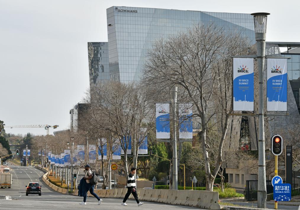 这是8月17日在南非约翰内斯堡拍摄的金砖峰会条幅。新华社记者 陈诚 摄
