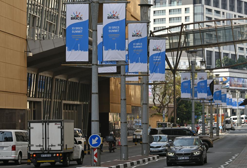 这是8月17日在南非约翰内斯堡拍摄的金砖国家领导人第十五次会晤条幅。