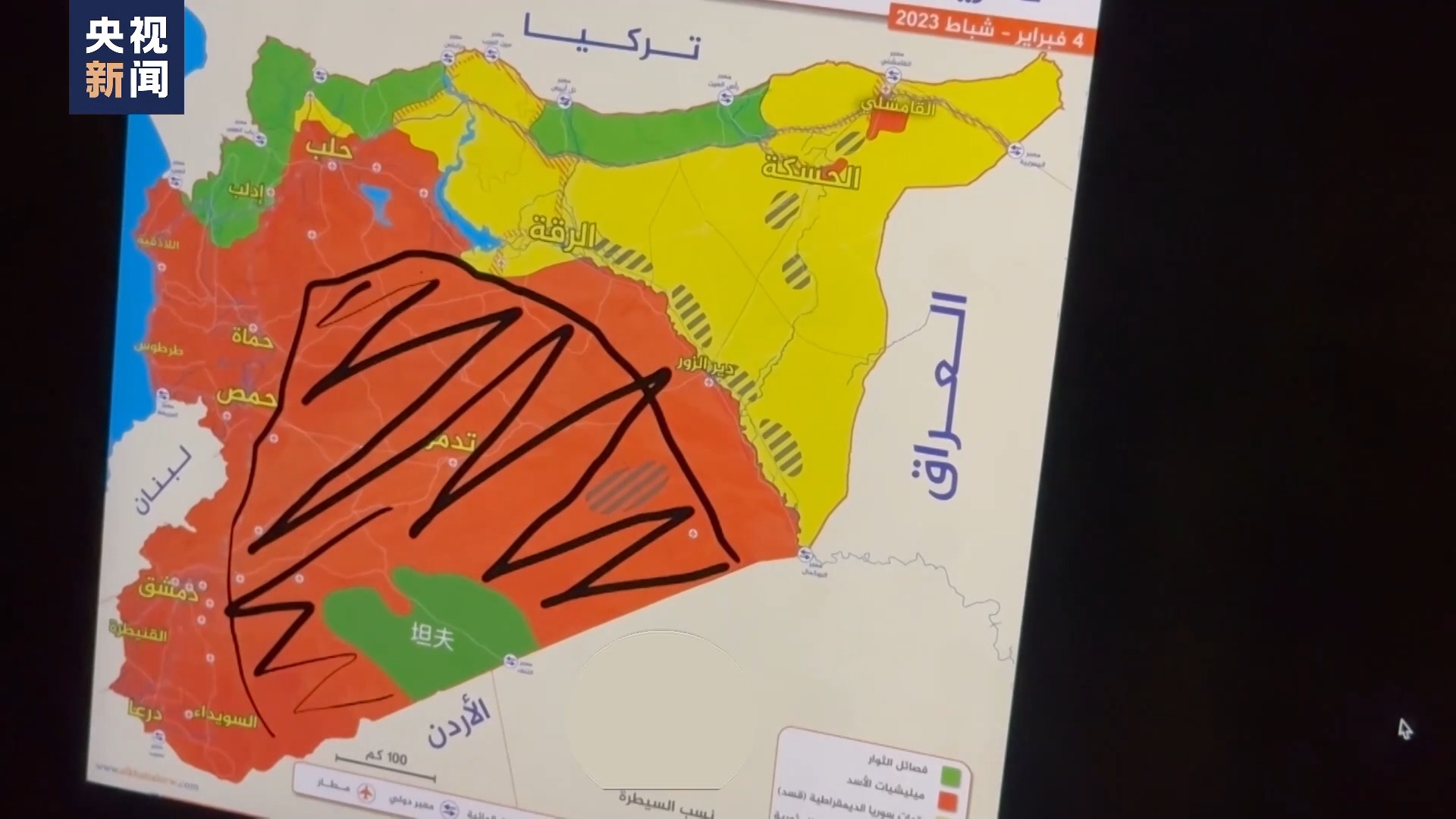 总台记者 王薇薇:这是一张叙利亚国内最新的势力控制图。从这张局势图上我们可以看出,叙利亚政府军控制了大约70%的领土,主要是控制了西部主要的城市,而美军及其盟友是控制了东北部与东南部。东南部的坦夫军事基地是美军在叙利亚的一个大本营。坦夫军事基地和在叙利亚政府控制区之间是一片广袤的被称为“叙利亚荒漠”的无人区,这片74000平方公里的荒漠地区成了叙利亚政府控制区与美军坦夫基地之间的天然屏障。面对广袤的荒漠地区,美军如何维持其在坦夫的势力范围?从2017年开始,当地媒体不断爆出美军在这片荒漠地区当中培训前极端组织人员,利用他们用游击战的方式来不断侵袭政府控制区。