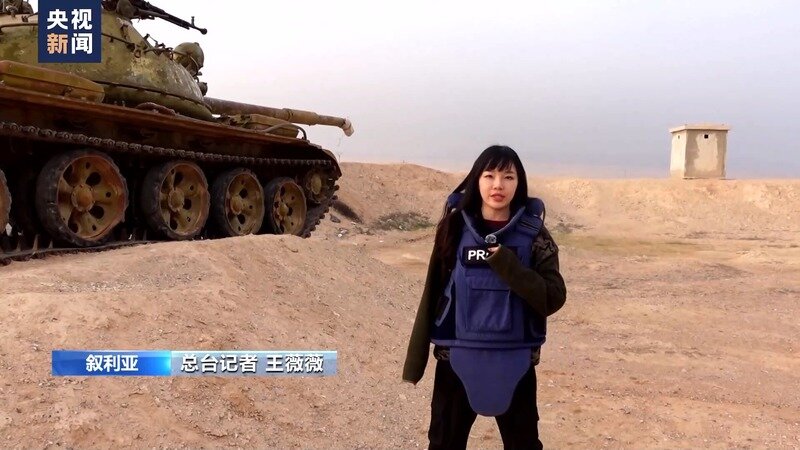 总台记者 王薇薇:这是叙利亚政府军在荒漠中的一个军事据点,也是这几年来叙利亚政府军第一次带外媒记者进入他们在荒漠中的军事据点。有一辆坦克,一个监测站,一个武器库和一队士兵。虽然处在平坦的荒漠中,但从外面看,几乎觉察不到这个军事据点的存在。