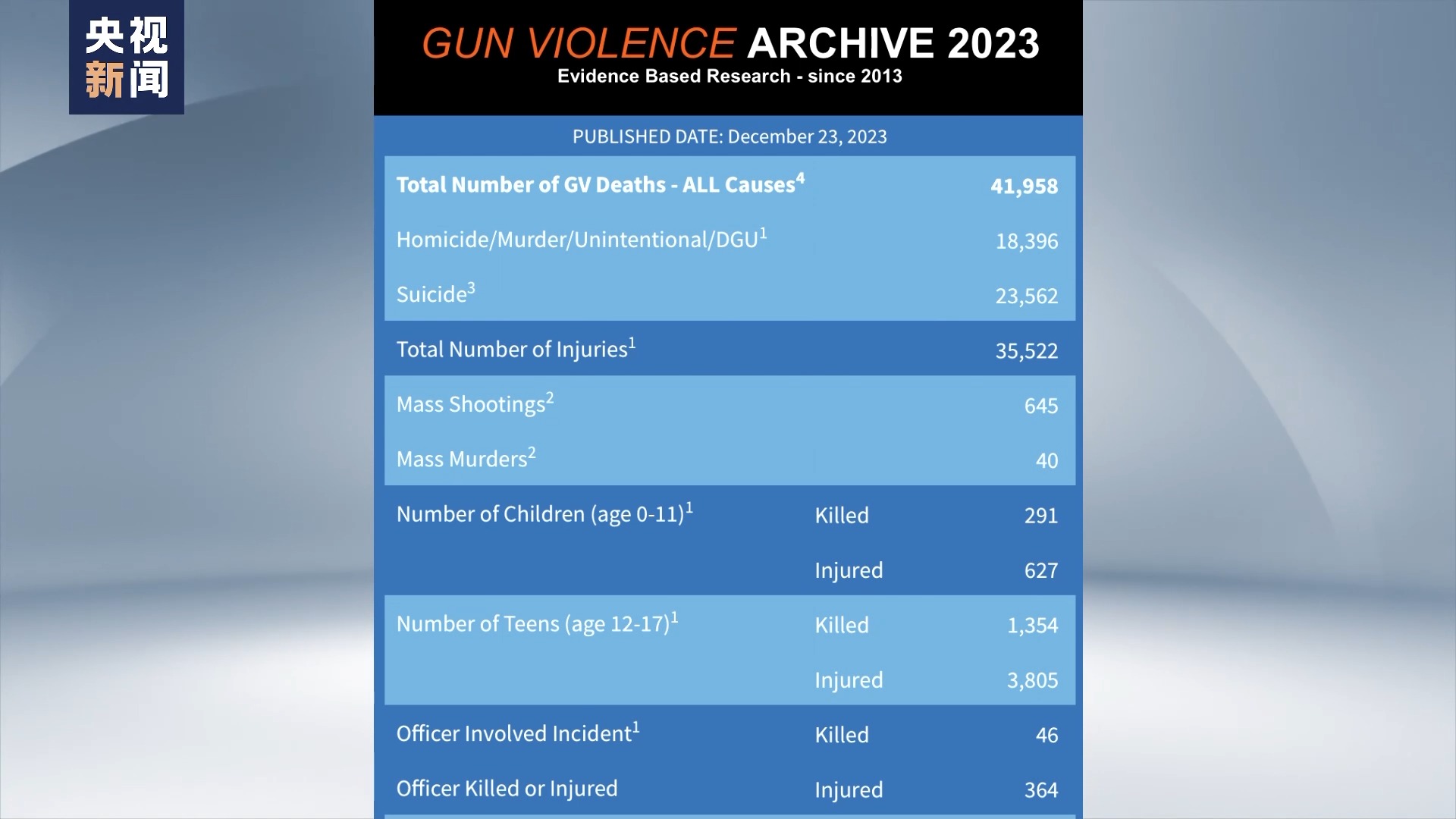 据美国“枪支暴力档案”网站统计,截至12月23日,今年美国已发生645起造成除枪手外、至少4人死伤的大规模枪击事件,近4.2万人在各类涉枪事件中死亡。