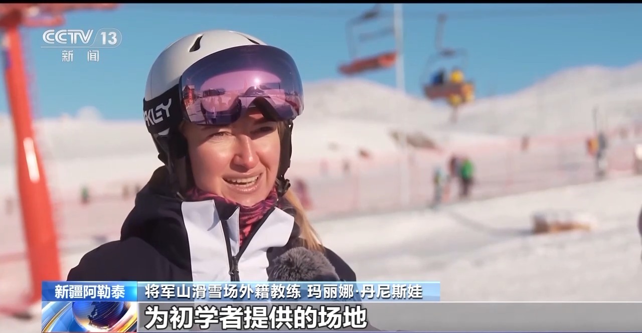 将军山滑雪场外籍教练 玛丽娜·丹尼斯娃:我很喜欢这里。这里还针对不同水平的雪友有不同的设施场地,初级的、高级的,还有很多像幼儿园一样为初学者提供的场地。