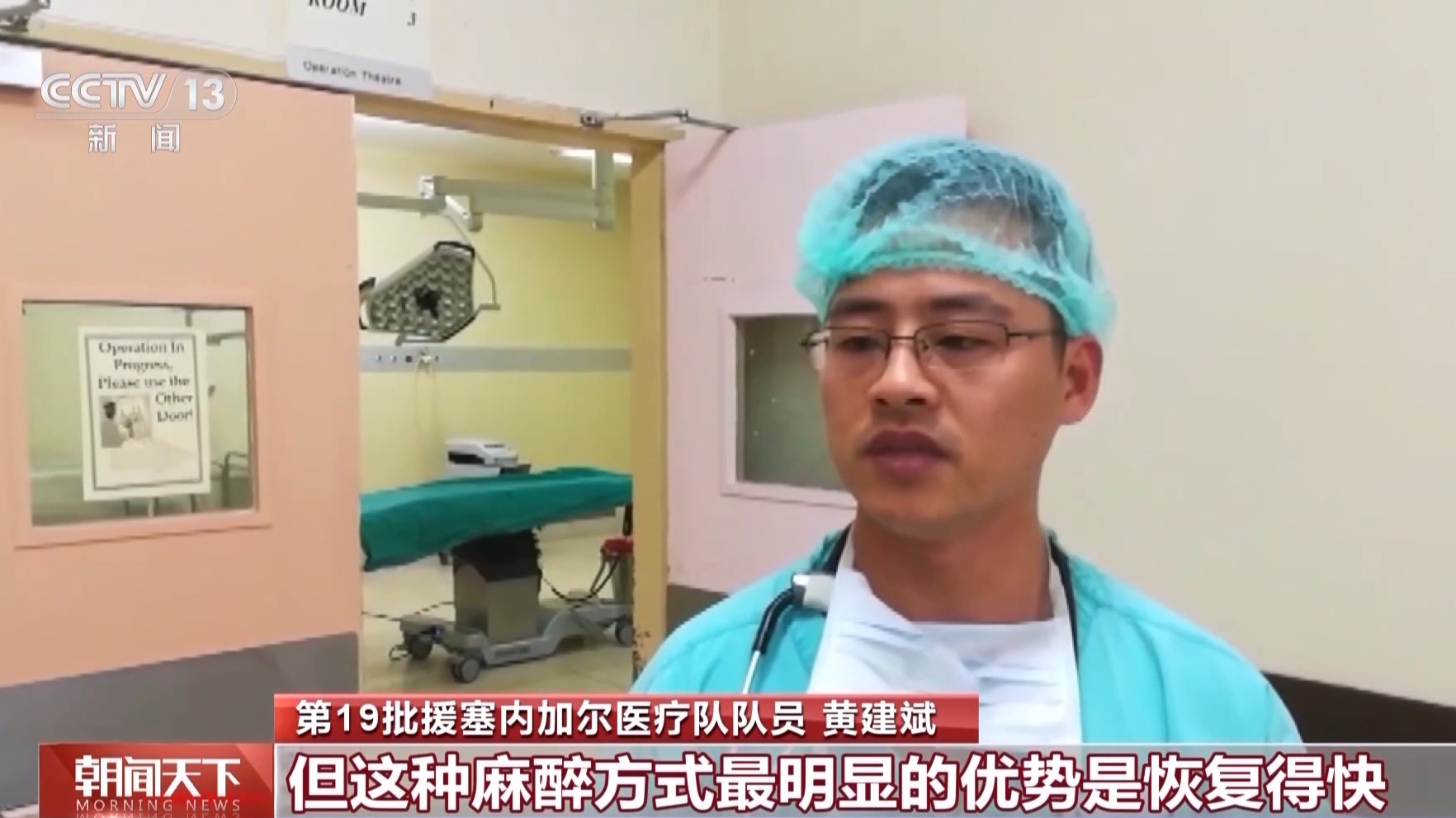 第19批援塞内加尔医疗队队员 黄建斌:虽然说这种麻醉方式操作上时间会有点长,但这种麻醉方式最明显的优势是恢复得快,对肌体功能影响最小。