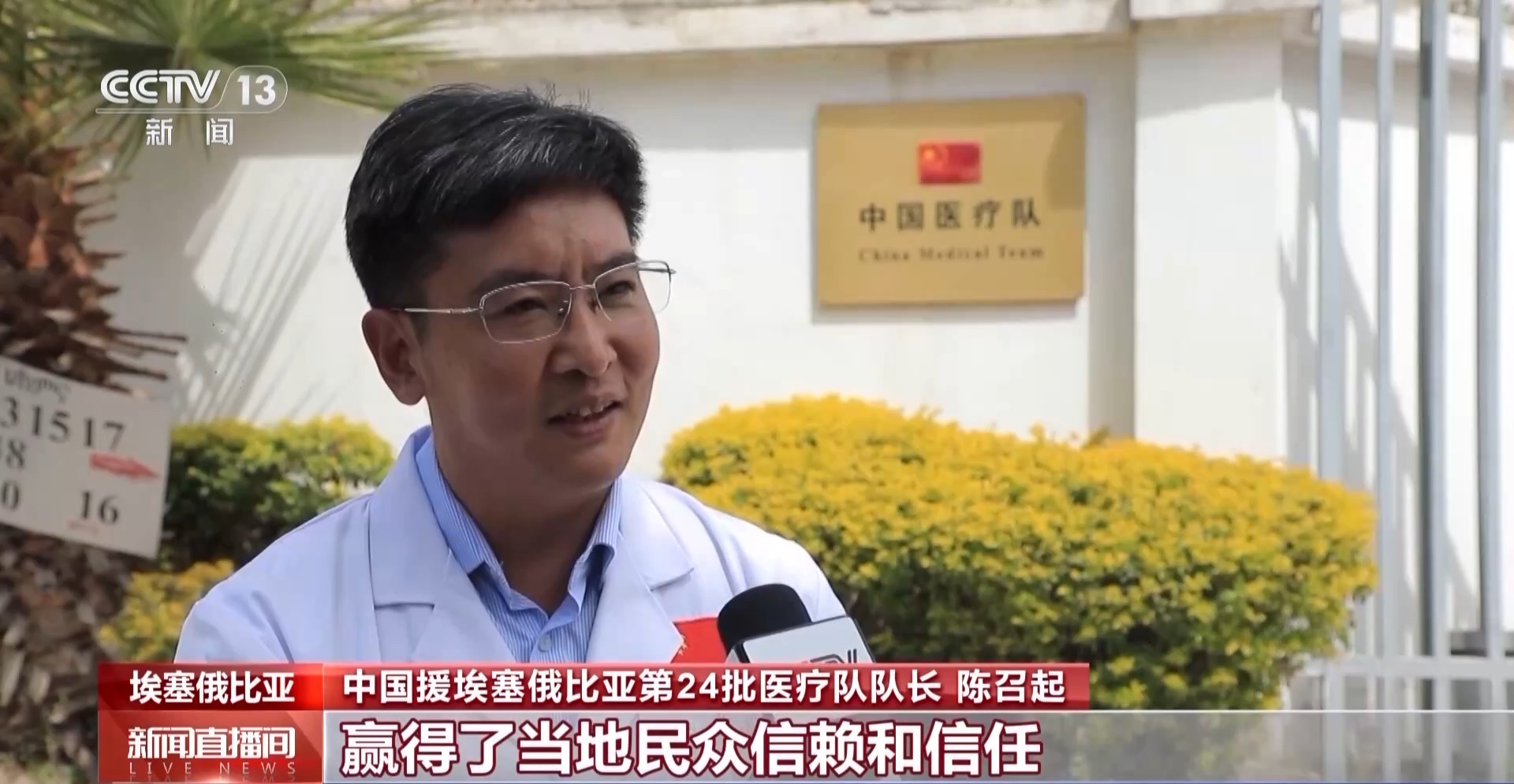 中国援埃塞俄比亚第24批医疗队队长 陈召起:我们是2023年4月份到达埃塞,在这期间,我们的医疗队队员在我们临床诊疗、学科建设、新业务新技术的培训、文化交流和巡诊义诊方面等等,做了很多的工作,赢得了当地民众信赖和信任。