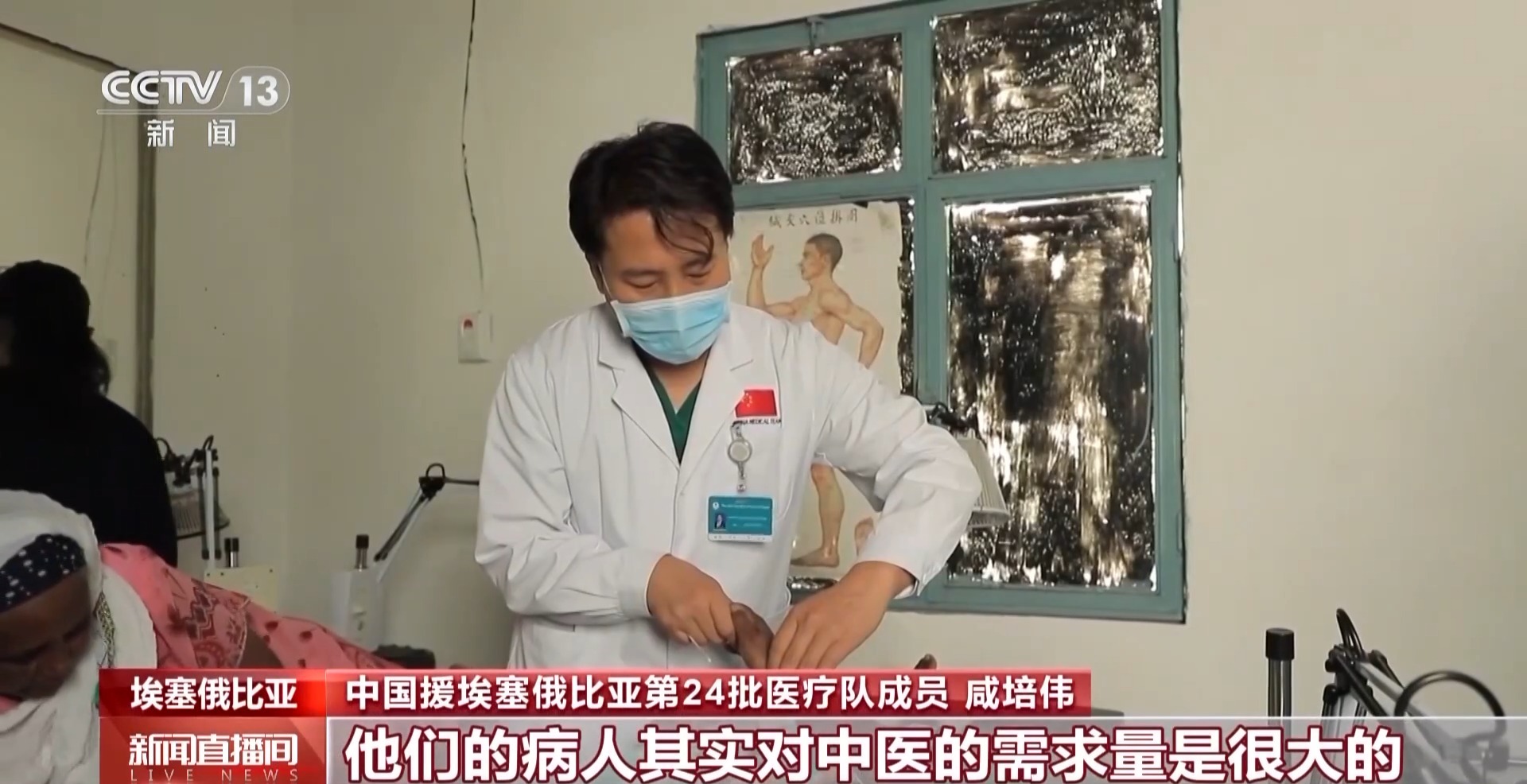 中国援埃塞俄比亚第24批医疗队成员 咸培伟:我们中医的这种简、便、验、廉的治疗方法,对非洲,特别对(埃塞)当地人民,肯定是大有用武之地,花费少,简单方便,然后疗效又好,受到了当地很多人的欢迎。