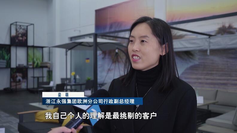 浙江永强集团欧洲分公司行政副总经理 梁萌:欧洲它对设计以及细节的需求是近乎于完美的,我们浙江当地的生产及产业链是能达到一个100%完全匹配的配合度的。