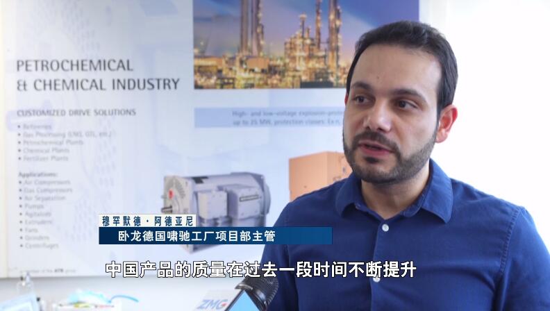卧龙德国啸驰工厂项目部主管 穆罕默德·阿德亚尼:中国产品的质量在过去一段时间不断提升,他们也对我们所供应的防爆电机非常信任。