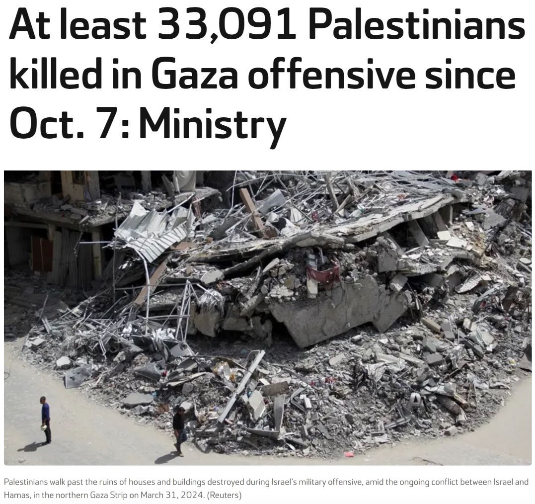 根据加沙卫生部门当地时间5日提供的数据,以色列在加沙地带的军事行动已导致超过3.3万人死亡,超过7.5万人受伤,其中大部分是巴勒斯坦妇女和儿童。