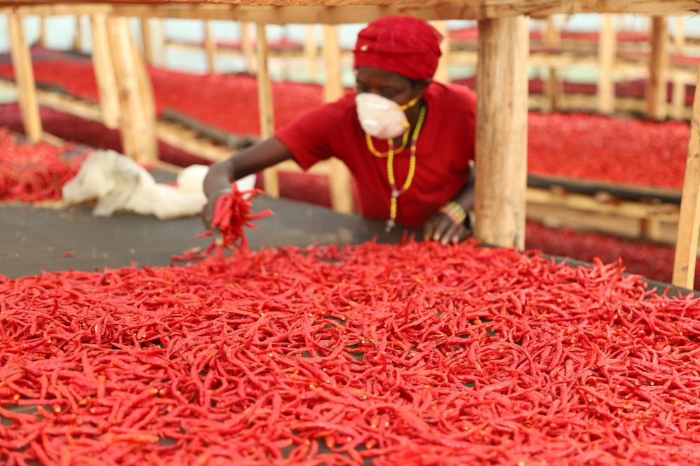 5月22日,工人在卢旺达东方省恩亚加塔雷地区筛选辣椒。新华社记者吉莉摄