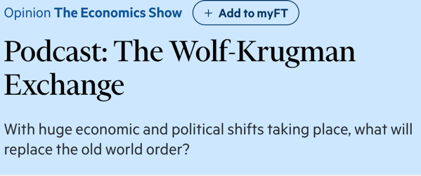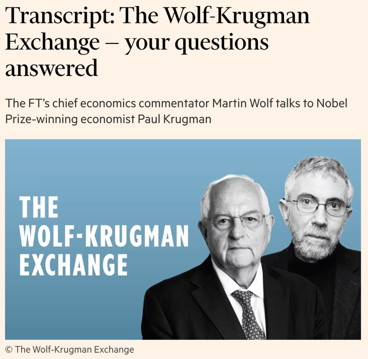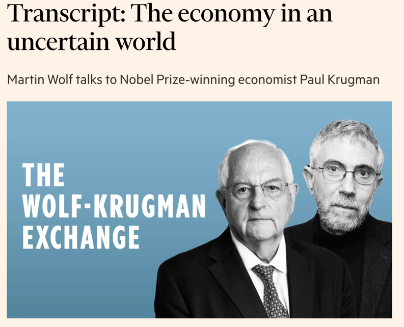 在美国关税政策再成焦点之际,诺贝尔经济学奖得主保罗·克鲁格曼(Paul Krugman)近日接受英国《金融时报》播客节目邀请,与《金融时报》首席经济评论员马丁·沃尔夫(Martin Wolf)展开对话,制作推出六期特别节目《沃尔夫-克鲁格曼对话》,讨论了美国在特朗普政府政策下面临的信任危机和治理崩溃的风险,特别对特朗普政府的贸易与关税政策进行了罕见的系统性批评。