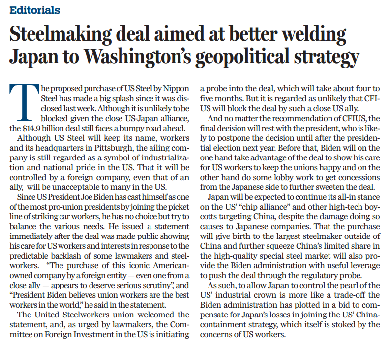 和评理 | 日企拟购美国钢铁公司 美国扎心要调查