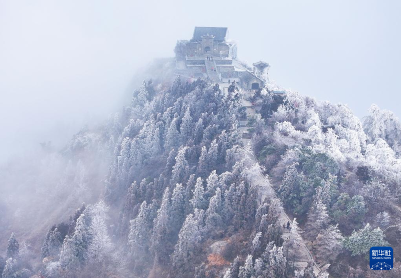 这是2月24日在湖南省衡阳市南岳衡山风景区拍摄的雪景(无人机照片)。
