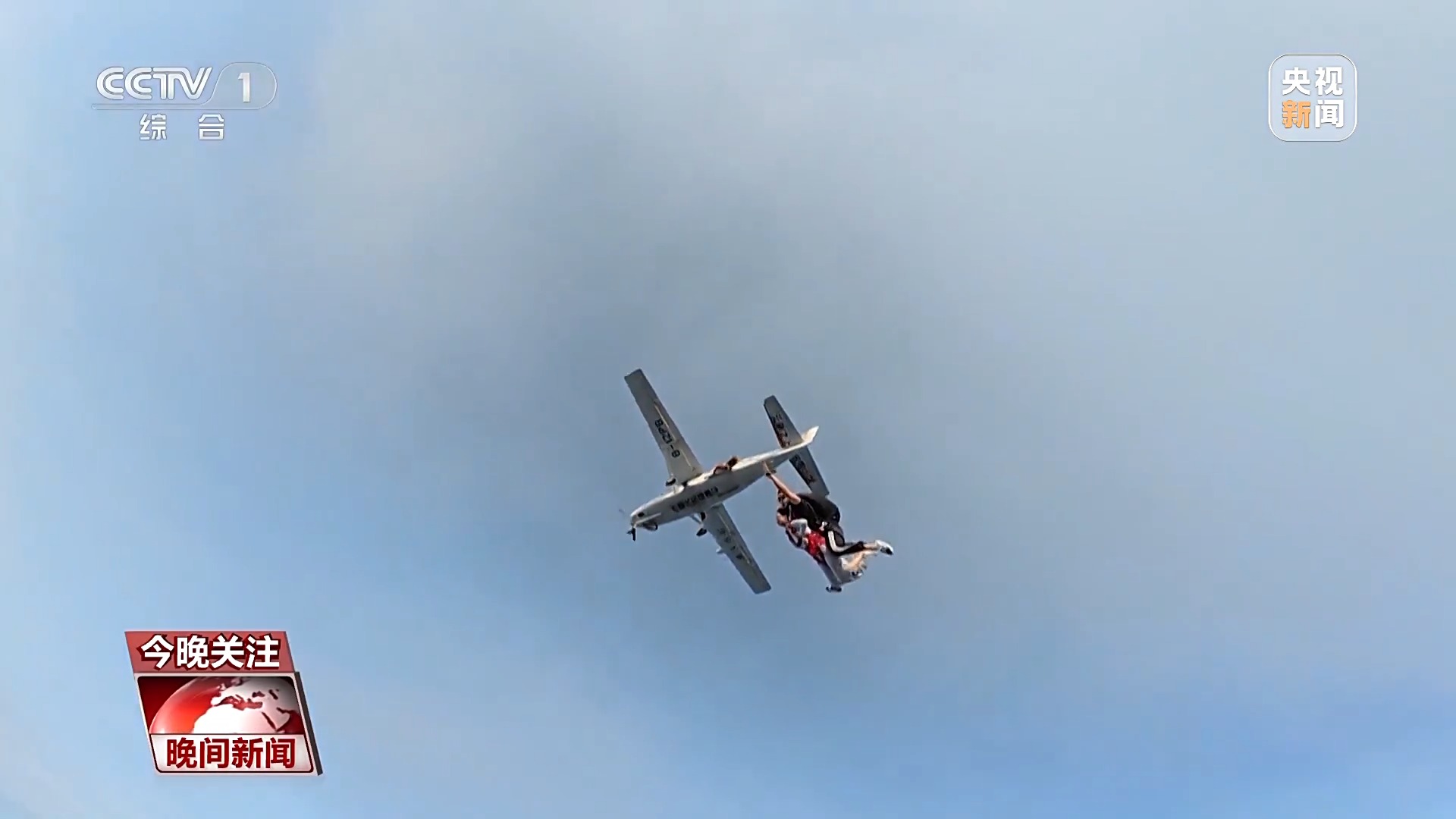在重庆梁平机场,很多游客体验到了高空跳伞的速度与激情。