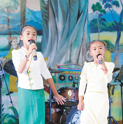 银井边防小学中缅学生在“中缅民心相通大舞台”文化交流活动中合唱歌曲。 孔永芹摄 |