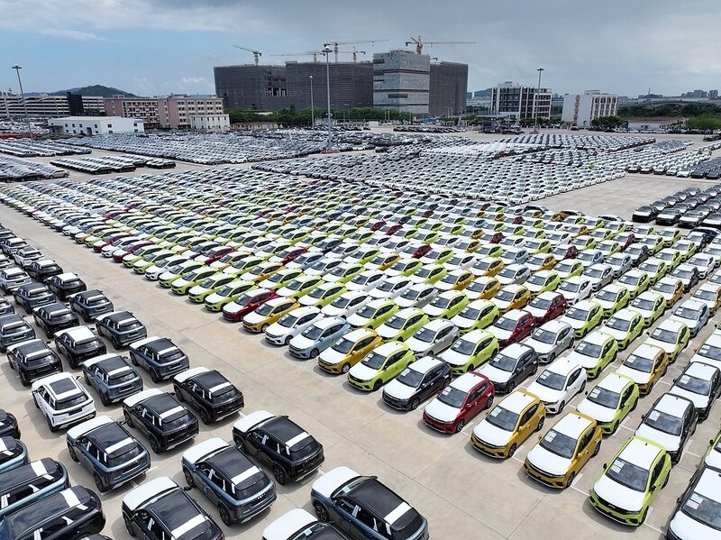 2025年5月15日,广州南沙汽车口岸等待出口的汽车(图自视觉中国)