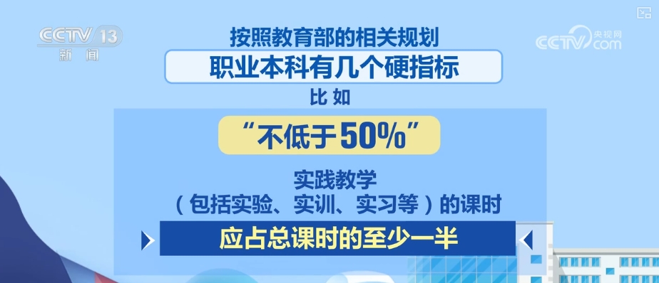 ·“不低于50%”——实践教学(包括实验、实训、实习等)的课时应占总课时的至少一半。
