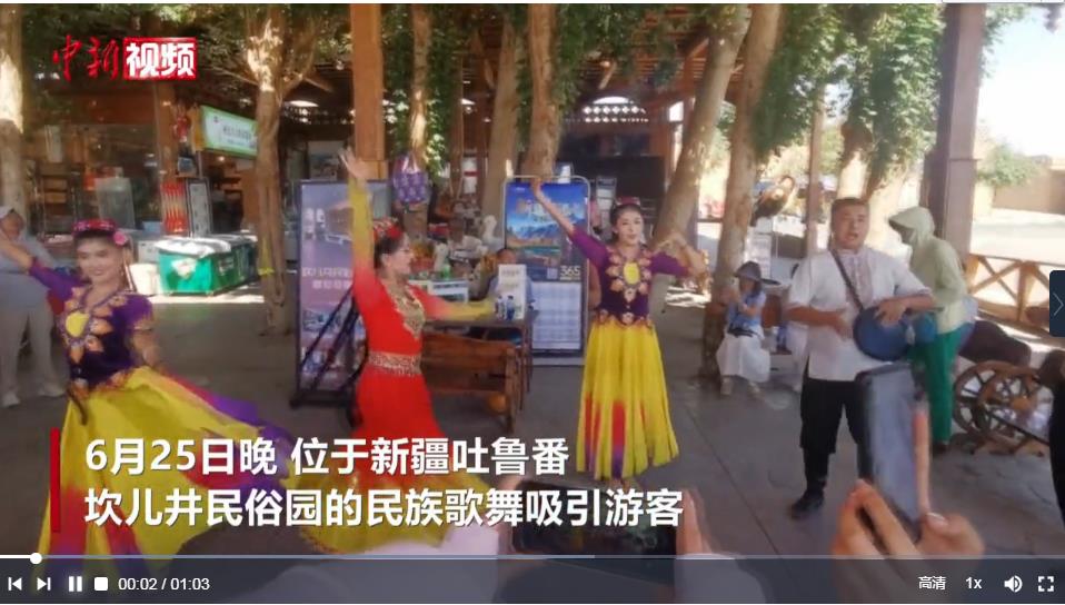 新疆坎儿井民俗园民族歌舞吸引游客