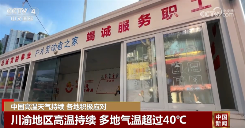 而在四川广安,15日,当地局部地区的日最高气温达40℃以上。在烈日下,当地工会驿站成为户外劳动者歇脚的清凉港湾。
