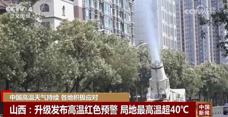 15日12时,山西省气象台升级发布高温红色预警信号,预计未来24小时,临汾、运城等地最高温将升至40℃以上。为此,临汾等地的环卫部门利用小型清洗车、高压冲洗车、雾炮车等对道路进行喷洒作业,并加大作业频次,以降低地表温度。一些户外劳动者驿站也为前来纳凉的群众提供解暑饮品、药品等。