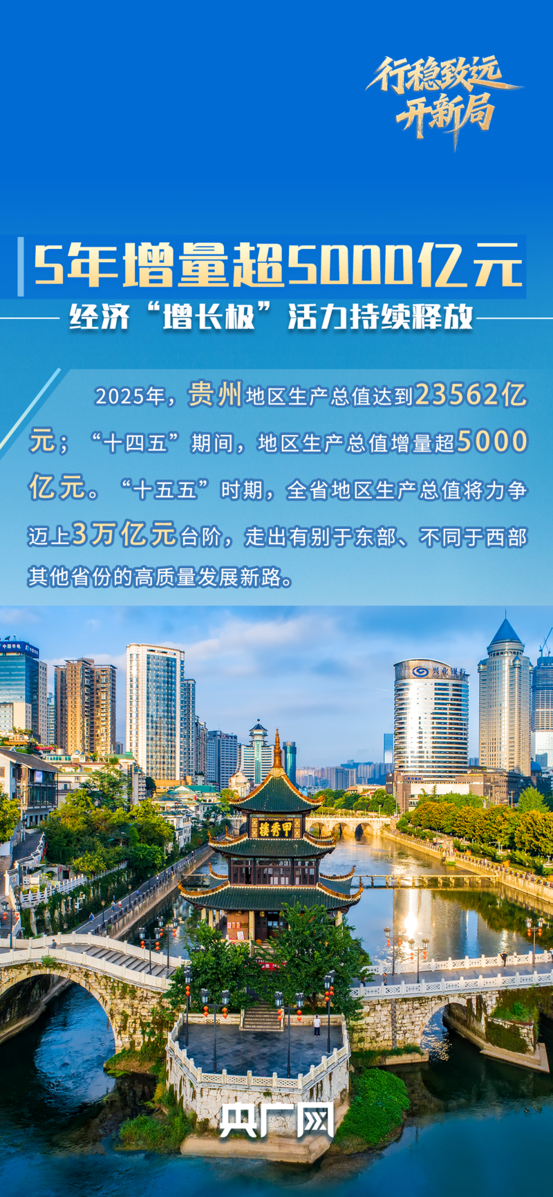 黔水长流,皆藏奋进篇章。“十四五”这五年,贵州以敢闯敢试的劲头突破山地之限,以桥路织就联通内外的脉络,以赛事点燃文旅融合的烟火,以算力激活全域发展的动能,在喀斯特大地上,绘就出生态与发展共生、速度与温度兼具的后发赶超新图景。